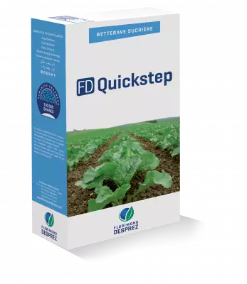 "FD QUICKSTEP est une variété tolérante à la rhizomanie qui combine excellente productivité et bon niveau de richesse. Variété équilibrée à riche, elle est parfaitement adaptée pour les premiers arrachages (un et deux). Grâce à son excellente couverture, elle assure également un développement printanier rapide."